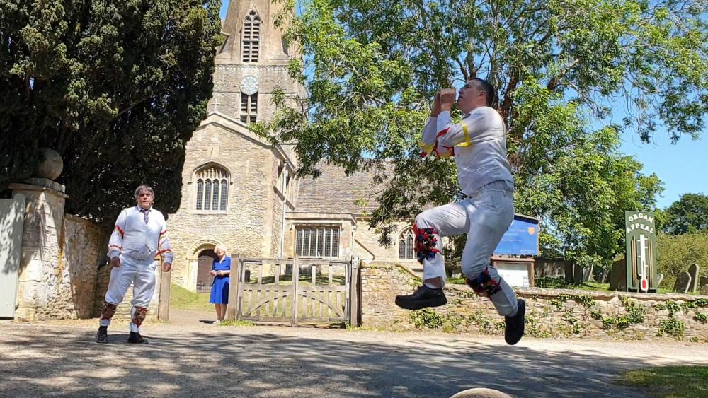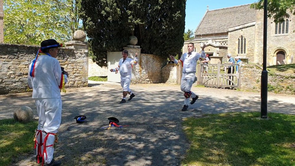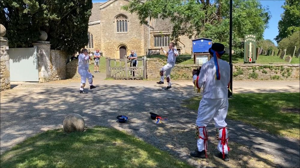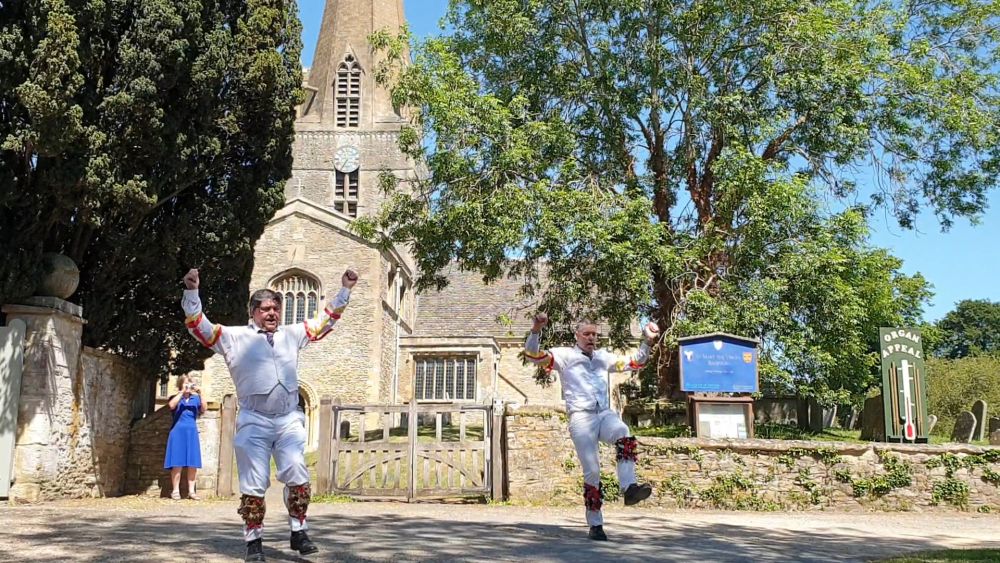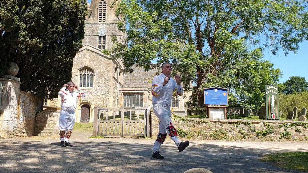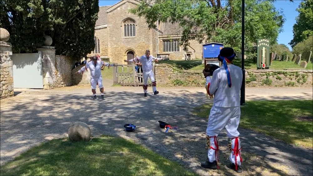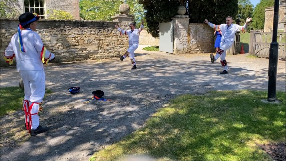 Because of the Covid-19 pandemic the traditional Whit Monday dancing had to be cancelled, but three members of the side kept the tradition unbroken with a short, unannounced performance at Church Gates that was done in conformity with the prevailing social distancing guidelines (which were easy to follow in Bampton jigs).